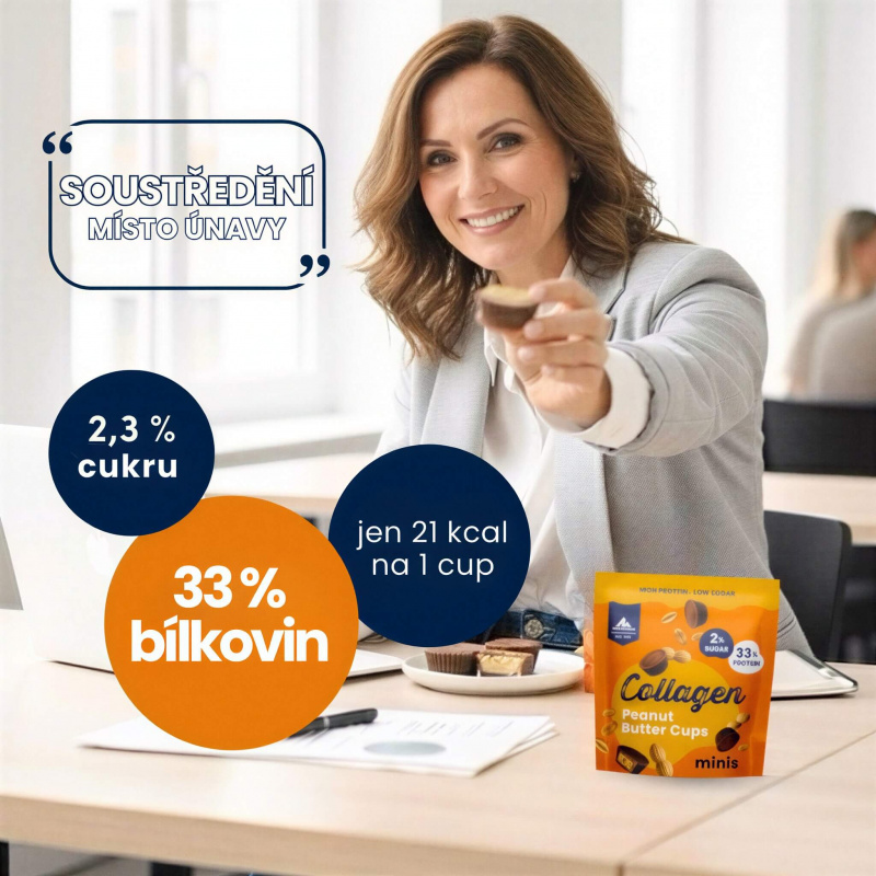 Multipower Collagen Peanut Butter Cups přinášejí něco, co proteinovým tyčinkám roky chybí - chuť, na kterou se budete těšit, bez přidaného cukru a s vysokým obsahem bílkovin. Zdravá svačinka stvořená pro všechny, kteří milují sladké, ale zároveň dbají na kvalitní složení a zdravější životní styl.