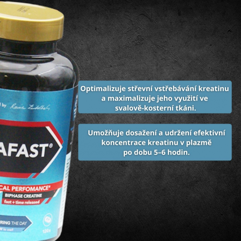 CREAFAST® je jediný kreatin s patentovanou bifázickou technologií, která kombinuje vysoký obsah čistého kreatinu s gastrorezistentní ochranou. Na rozdíl od alternativních forem má rozsáhlé vědecké pozadí a není závislý pouze na marketingových tvrzeních.