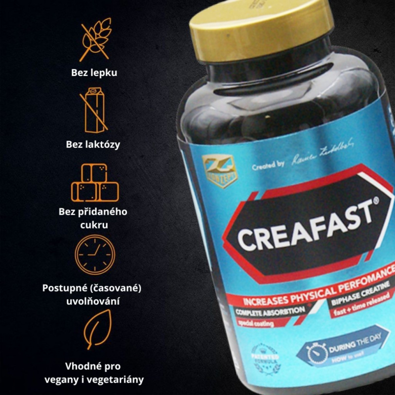 CREAFAST® je jediný kreatin s patentovanou bifázickou technologií, která kombinuje vysoký obsah čistého kreatinu s gastrorezistentní ochranou. Na rozdíl od alternativních forem má rozsáhlé vědecké pozadí a není závislý pouze na marketingových tvrzeních.